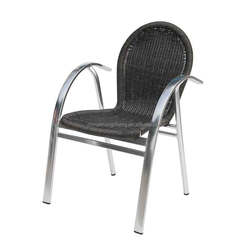 Bán buôn nhà máy ngoài trời tay vịn màu đen nhà hàng Bistro PE wicker mây ghế ăn