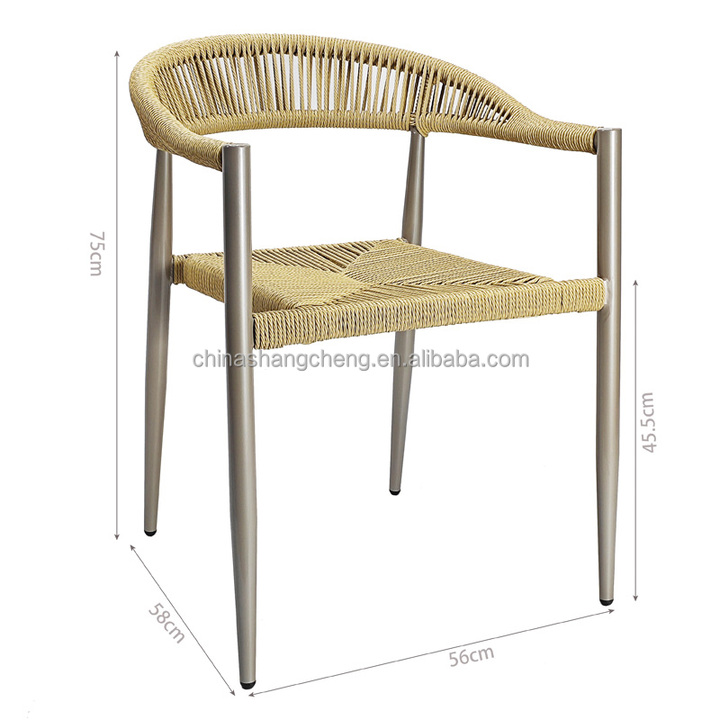 Tuin Bistro Balkon Aluminium Restaurant Geweven Rieten Stapelbaar Buitenterras Meubilair Eetkamer Rotan Stoel