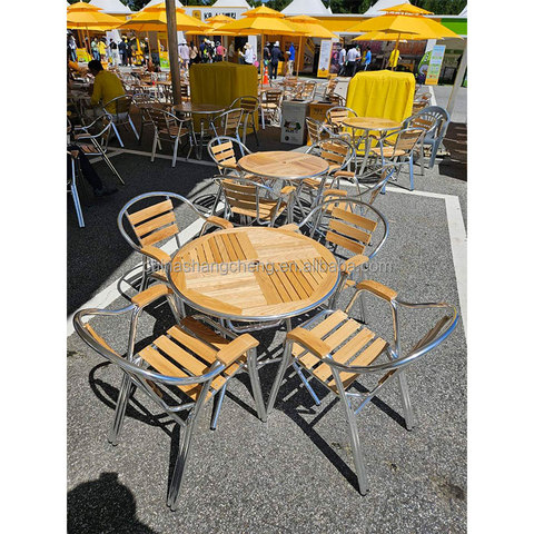 Venda quente de alumínio carcaça de madeira plástica, restaurante, cantina, pátio, teak, madeira, mesa, jardim ao ar livre